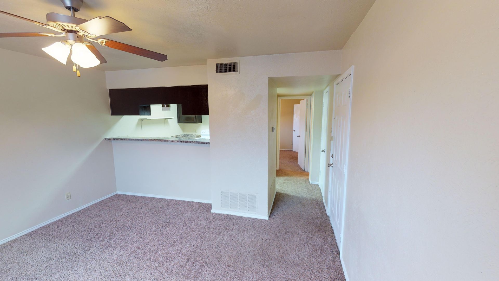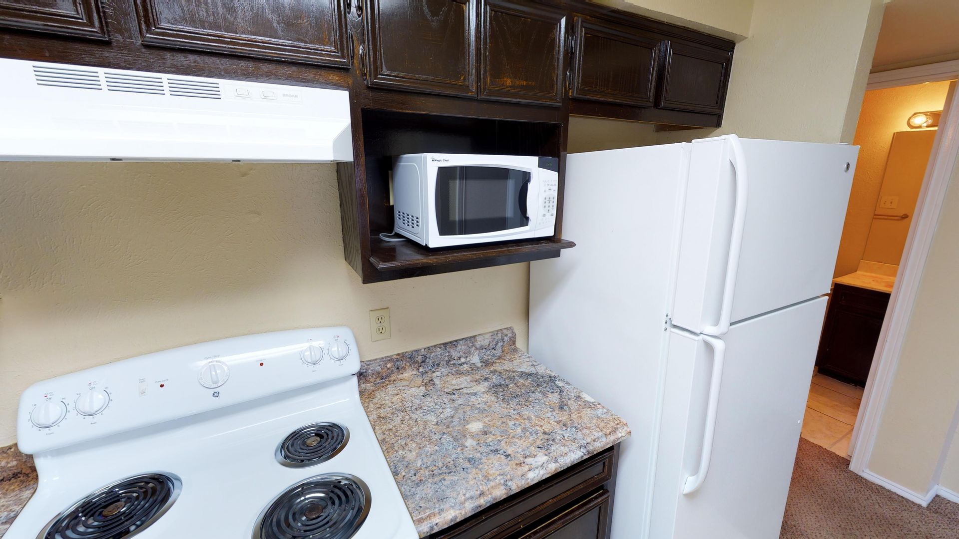 This apartment features an open floor plan with a high kitchen bar, a built-in bookshelf in the living room, and ample closet space. The property is pet-friendly and includes a refrigerator, electric stove, dishwasher, disposal, and microwave—making everyday living simple and efficient. Enjoy year-round comfort with central air conditioning, electric heating, and an electric hot water heater.